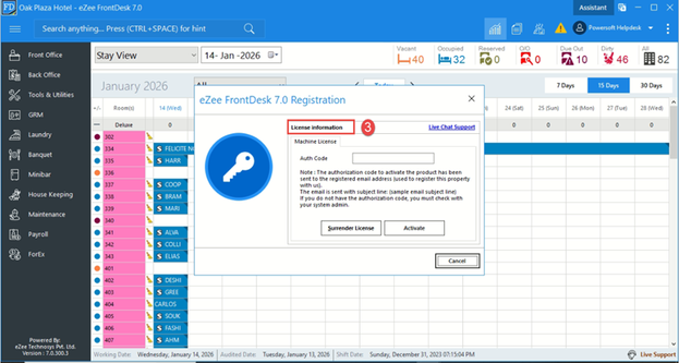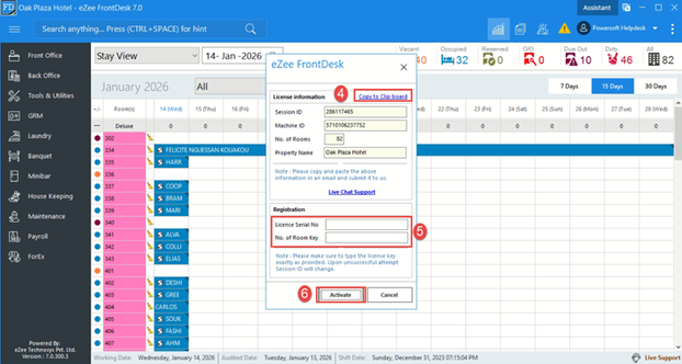 - Forward copied details to Overall Administrator (CEO) to generate the License Serial No. and No. of Room Key.