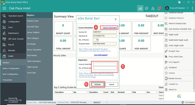 Note: The steps involved in activating licenses for eZee software packages on servers are performed twice - for the software itself and then for the modules in the software.