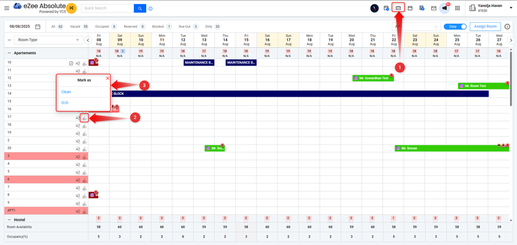 How to Update Dirty/ Clean Rooms in eZee Absolute
